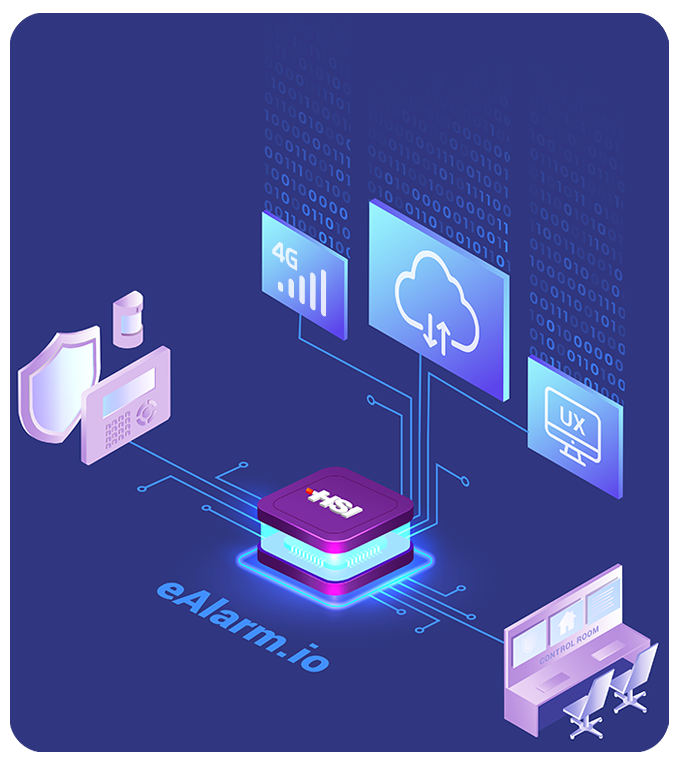 eAlarm.io is a complete solution for sending alarm events to monitoring station as a service. It starts with accepting ContactID events from phone line and it ends sending SIA-DC09 events to monitoring station. Includes module, management platform and GSM network cost.